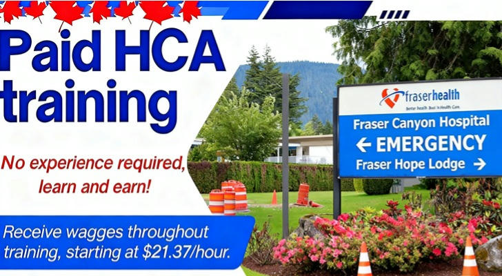 Fraser Health is offering a 3 weeks Government-Funded HCA Course that lets you learn on the job even without prior experience. Starting pay is $21.37 per hour during training, making it easy to kickstart your healthcare career!