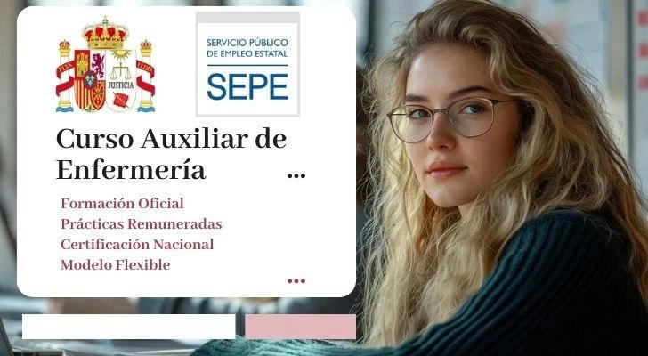 📌 SEPE – Formación profesional sanitaria | Auxiliar de enfermería: servicios especiales (UCI, urgencias, quirófano, diálisis) | 100 h | Todos | Curso oficial | Contenido actualizado para mejorar la empleabilidad; consultar fechas en plataforma oficial de SEPE |